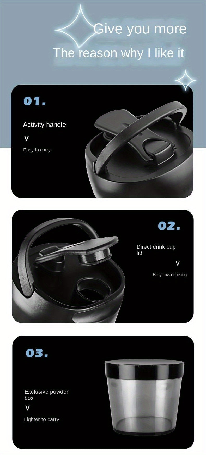 【Protein Powder Container】The difference from the first generation is that our protein powder container can be fixed on the lid of the cup and will not take up additional space.